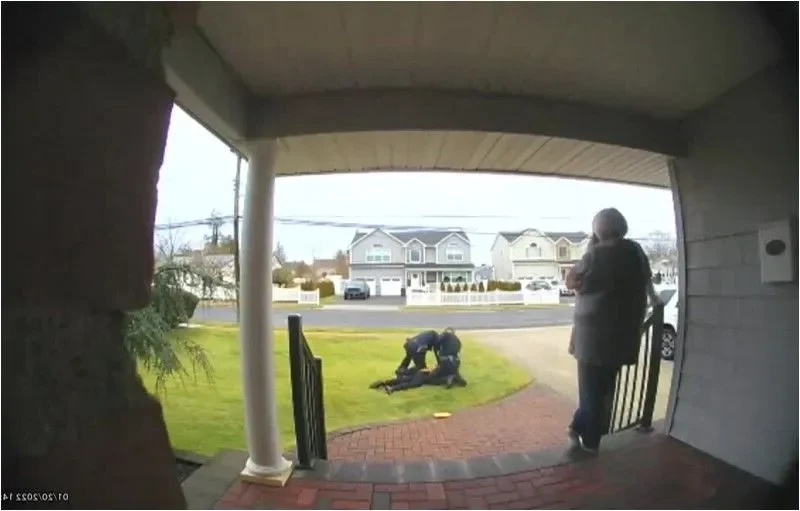 Jean Ebbert watches as Joshua Estrella Gomez is tackled and taken into custody by Nassau County deputies. (Source: Screenshot/Fox West Dakota)