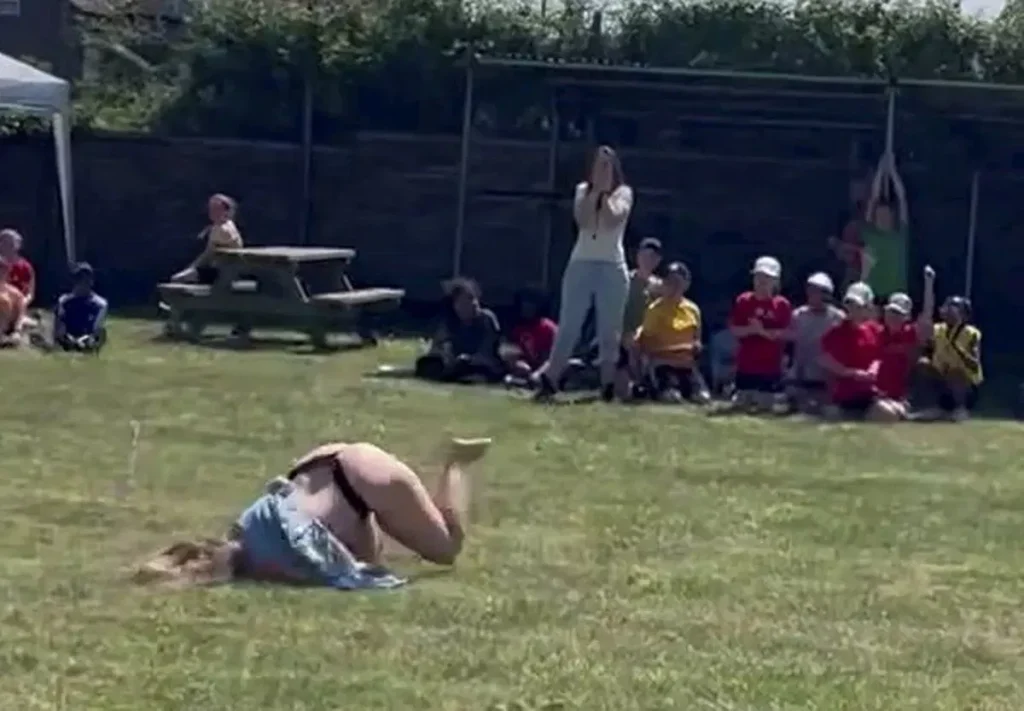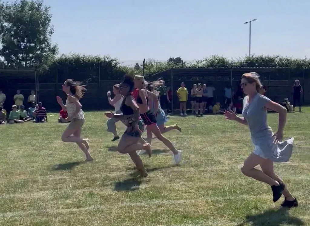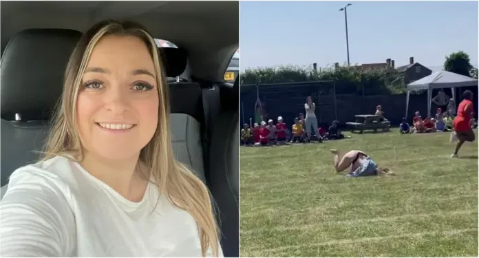 The 36-year-old Katie Hannaford of Basildon, Essex, had consented to compete in a parents’ race at her daughter’s school. She was unaware that she would become an internet sensation.