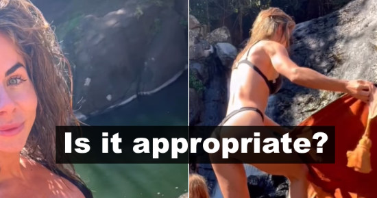 Seriously, rocking a bikini at the beach is such a non-event here, it never crossed my mind to slap a warning on the pic.” Honestly, you can almost hear the eye roll.